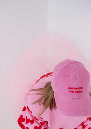 Rock your resilience with our super soft vintage washed cap, featuring the embroidered "Over Heating Over Eating" on the front & "Surviving Peri" on the back in striking red. This classic, relaxed-fit cap is designed for comfort and style, making it the perfect accessory for anyone navigating perimenopause with a sense of humour. Adjustable strap for a custom fit. Wear your strength proudly!